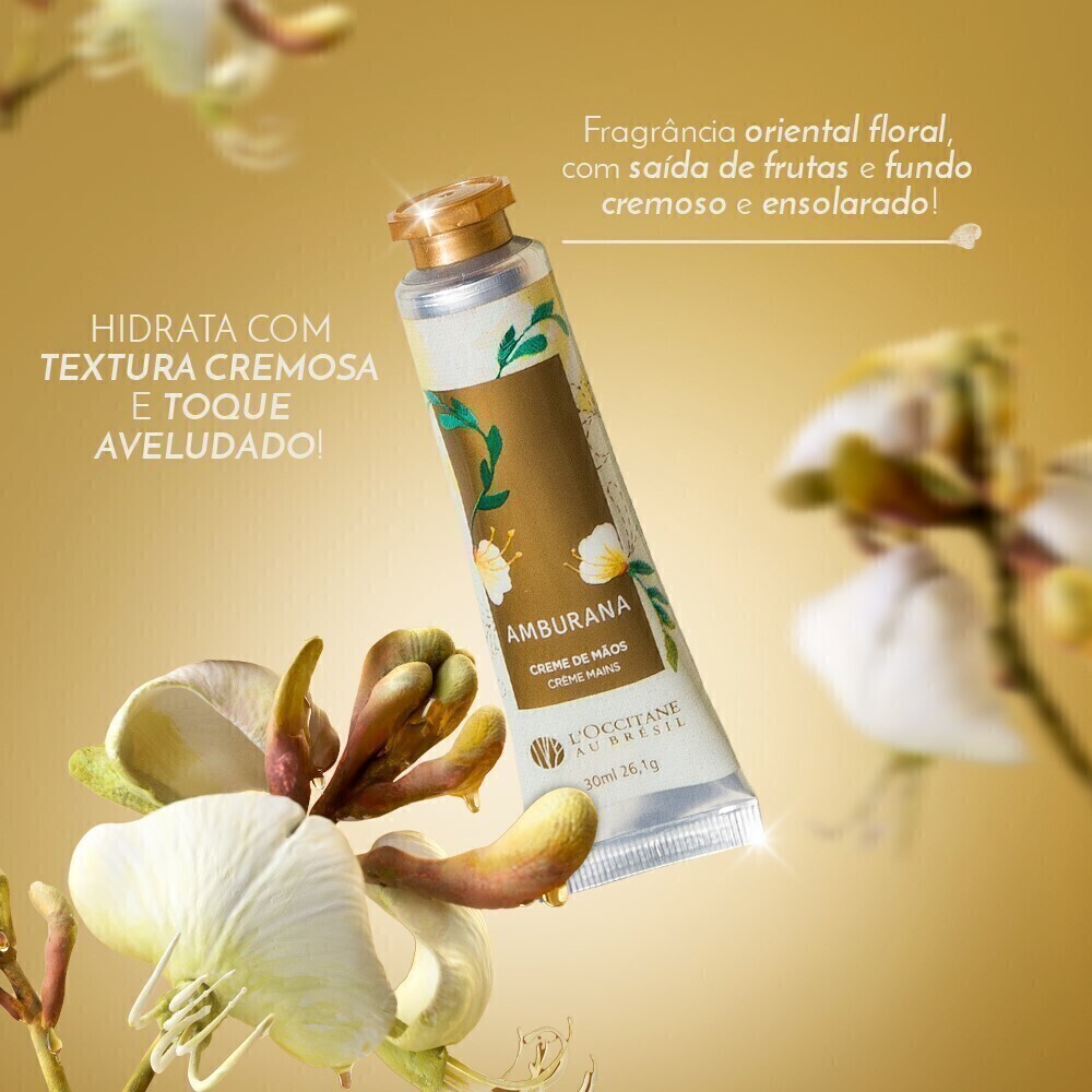Este Creme Desodorante para Mãos Amburana, celebra a árvore dourada da natureza brasileira. Hidrata, desodoriza e suaviza as mãos. Deixando-as perfumadas e macias com um caminho oriental floral. Contém Óleo de Amburana.